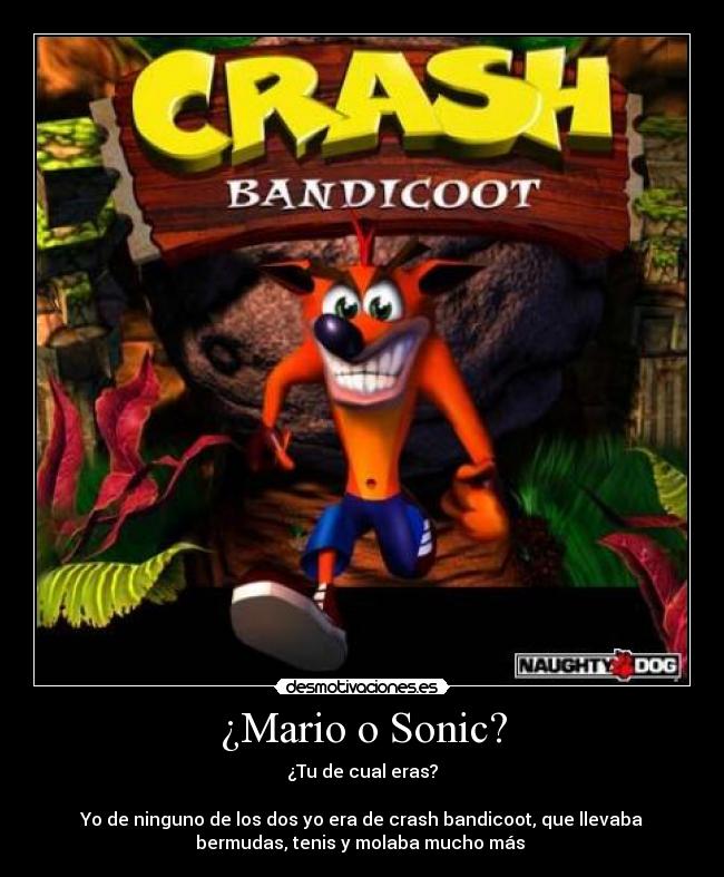 Hola chicos estos últimos días me estado sintiendo sentimental ya que no se si lo dije en la entrada de la nueva sección pero crash bandicoot es el primer juego que conoci y juegue en toda mi vida me trae tantos recuerdos muy lindos de aqullos tiempos el esfuerzo y la tencion de pelear contra los jefes es un poco triste que ya no produzcan juegos de el me da mucha pena ya que con al tecnología de ahorra un juego de crash con esos graficos pero con el crash del viejo estilo como el del twinsaniti sertia hermoso